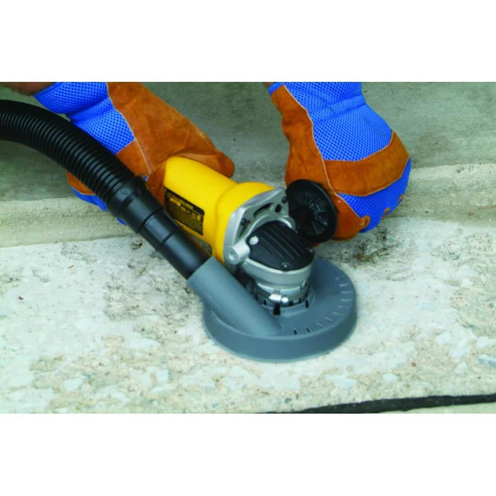 - Vacuum shroud used in dust containment while grinding with angle grinders